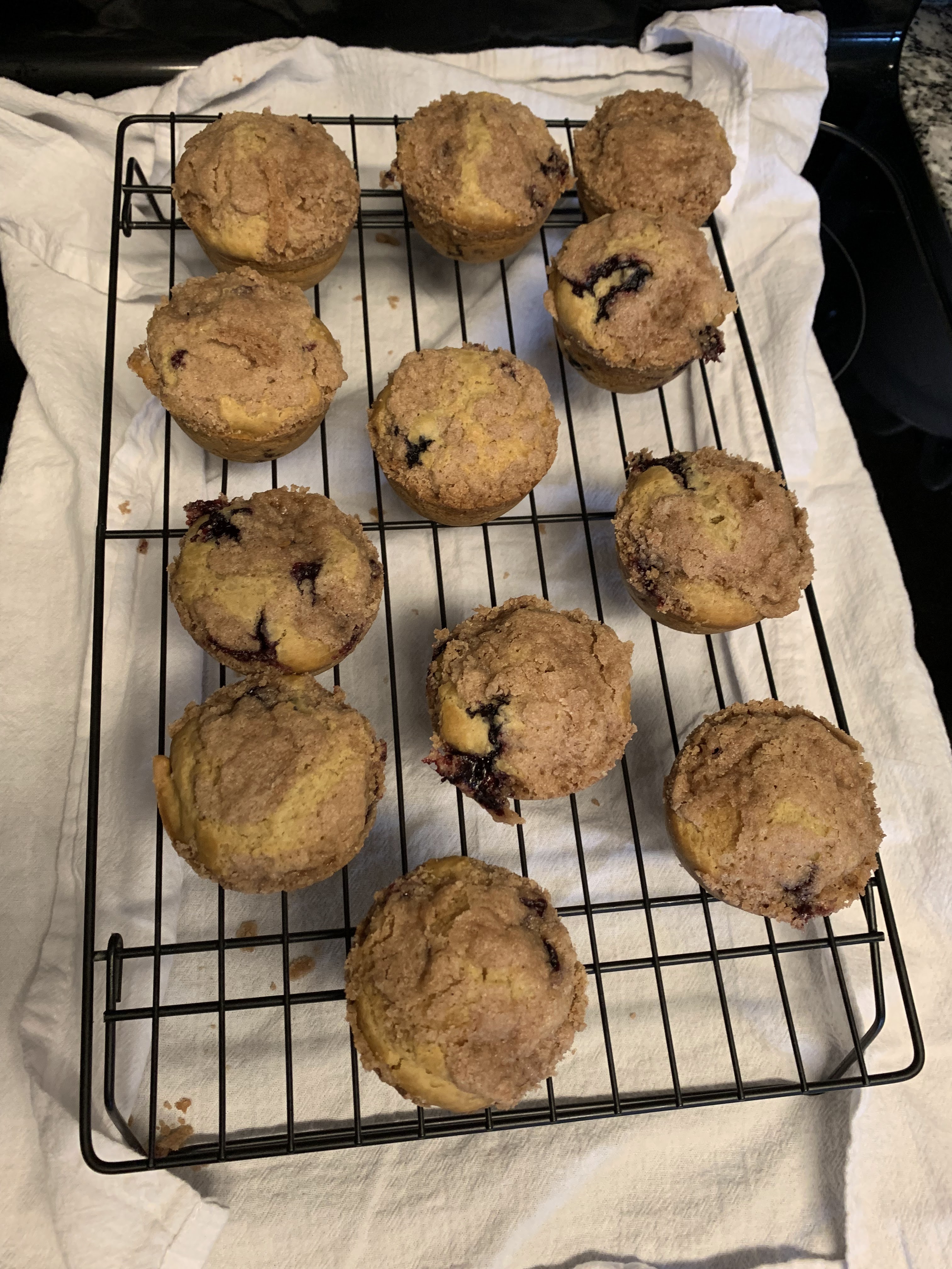 I got this recipe from The Gingered Whiskand they are easily one of the most delicious blueberry muffin recipes I’ve ever had. I also have to say that Brad III did really well and made these extra fluffy. I mean look at that delicious crunchy topping and delicate crumb!