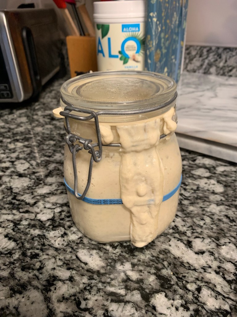 So, if you want to know how I made this loaf, I had to base it off the last time I made it–which is based off the bread we made at the bakery (not a sourdough). I obviously made some tweaks because the first time my starter was not as mature and it was not happily fed.